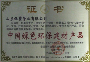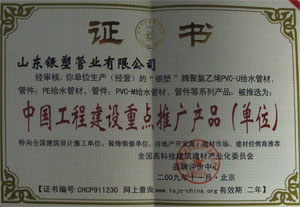 资质单位: 山东银塑管业有限公司
