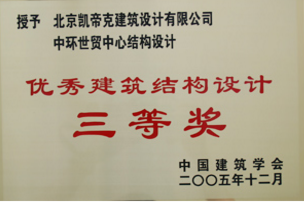 资质名称: 优秀建筑结构设计三等奖 |
